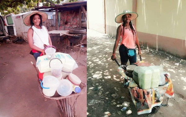 “Hello, this is me. I sell food on a wheelbarrow, yes I went to school, married to a lawyer, but some will say y r u doing this? Some even said u r beautiful to be selling food in a wheelbarrow? I laughed, see when God want to bless you he takes you out of yourself comfort zone, am not ashamed of my hustle, I got praises likewise criticised for my hustle.