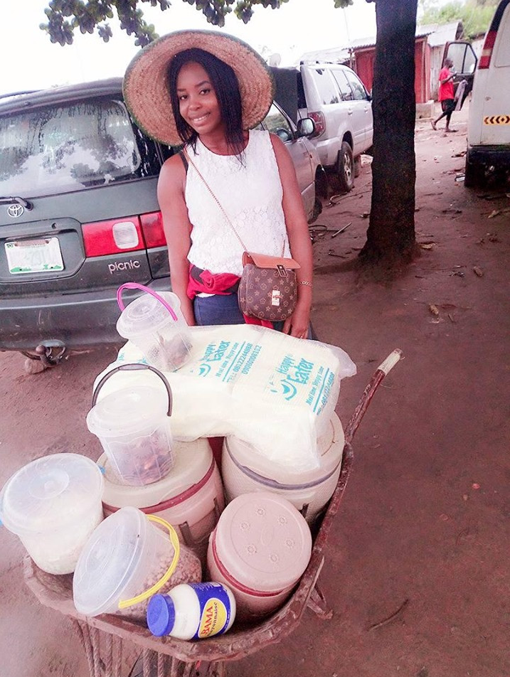A Nigerian graduate who sells food on a wheelbarrow, revealed she makes more than salary earners as she recalled the challenges she faced when she began her business.