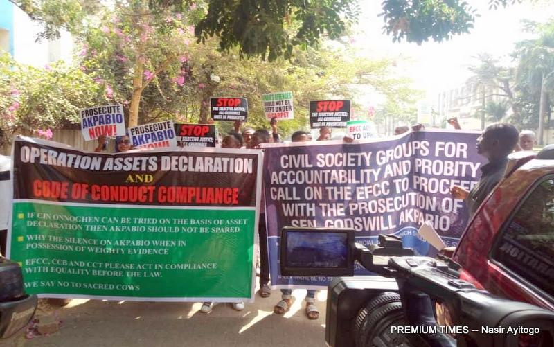 Following the sponsored protest staged last Monday by a civil right group at the zonal office of the Economic and Financial Crimes Commission (EFCC) in Wuse 2, Abuja, against former Akwa-Ibom governor, Godswill Akpabio and demeaning allegations leveled against him were mere sabotage and sponsored campaign of calumny.