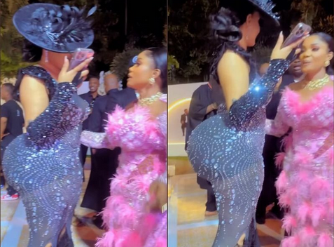 A viral clip from the event captured the moment the curvaceous woman exchanged pleasantries with Iyabo Ojo, sending social media users into a frenzy.