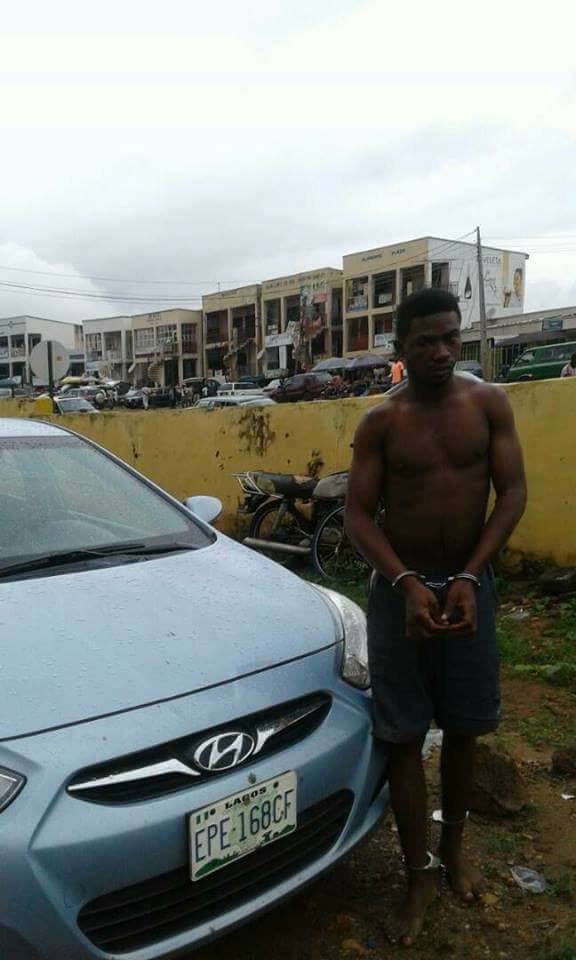 A young man who snatched a vehicle on Friday night at Gaa Akanbi area of Ilorin, Kwara state capital – has been apprehended by security men. According to reports, there was a baby inside the car when the incident happened. After the vehicle was snatched, police operatives were notified as they swung into action.The culprit was nabbed as the stolen car and baby inside were recovered.