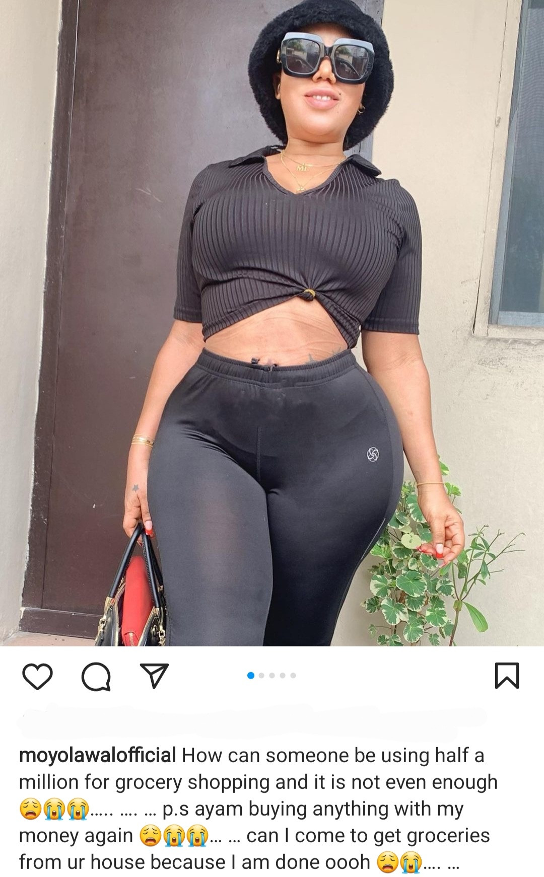 The actress shared several crying emojis on instagram and asked how someone can go grocery shopping with half a million naira yet it wasn’t enough.