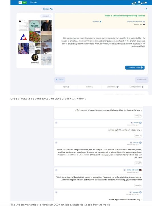 The app, which had 2.5 million visits last year — more than Amazon or AliExpress within the kingdom — is still available on the Apple and Google Play stores despite being criticised by the UN’s Special Rapporteurs in 2020 for facilitating modern slavery.