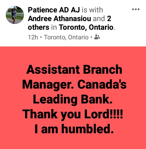 A Nigerian woman has achieved a great feat in faraway Canada after being appointed to a top position at a leading bank in the country.