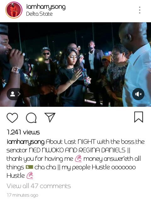 About Last NIGHT with the boss,the senator NED NWOKO AND REGINA DANIELS || thank you for having me money answer’eth all things cha cha || my people Hustle ooooooo Hustle