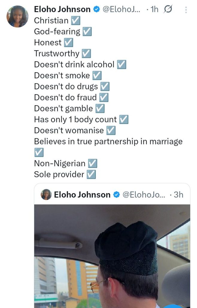 A Nigerian woman, Elohi Johnson, has taken to social media to praise her Caucasian husband, highlighting his admirable qualities and good nature.
