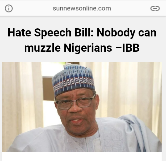 Former military president, General Ibrahim Badamasi Babangida, has weighed in on the controversial Hate Speech Bill, saying nobody can Muzzle Nigerians and deny them freedom of speech.