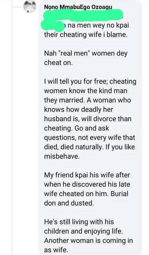 He stated this under a Facebook post about a woman who cheated on her husband.