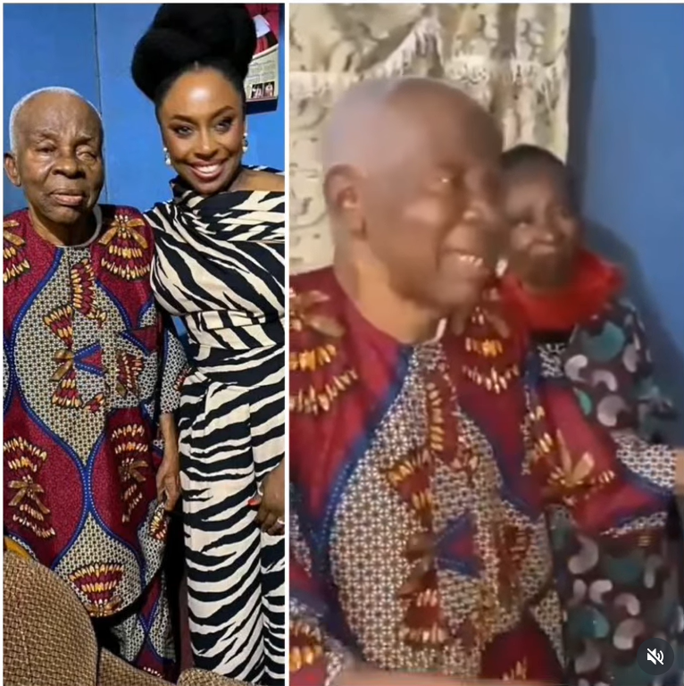 Celebrated Nigerian author Chimamanda Ngozi Adichie recently paid a touching visit to her former kindergarten teacher, Mr. Ralph Idoko, at his residence in Nsukka, Enugu State.