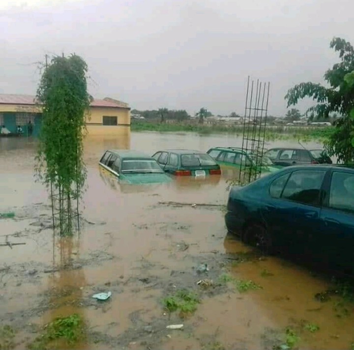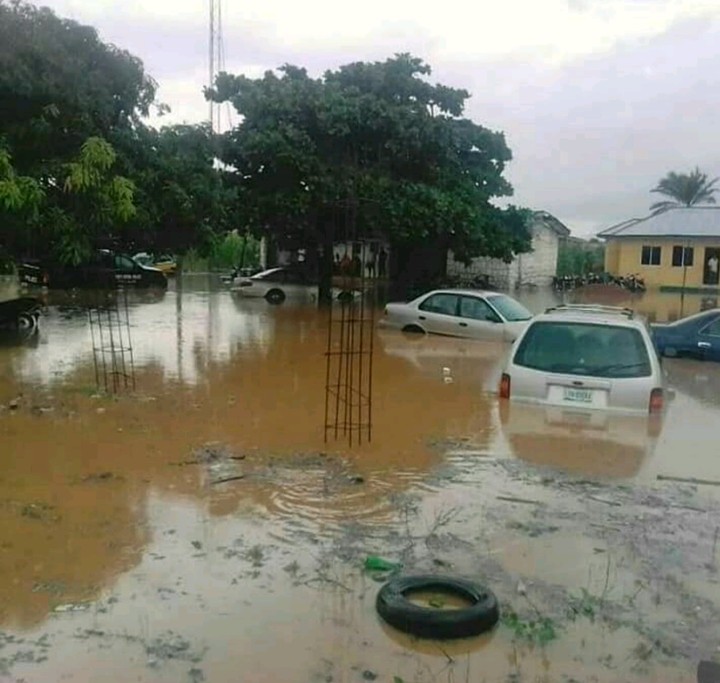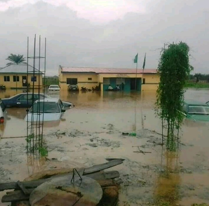 Flood submerged nigeria police station after an heavy rain fall in ilorin, kwara state.