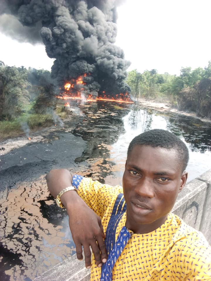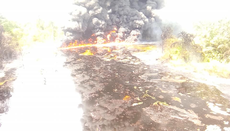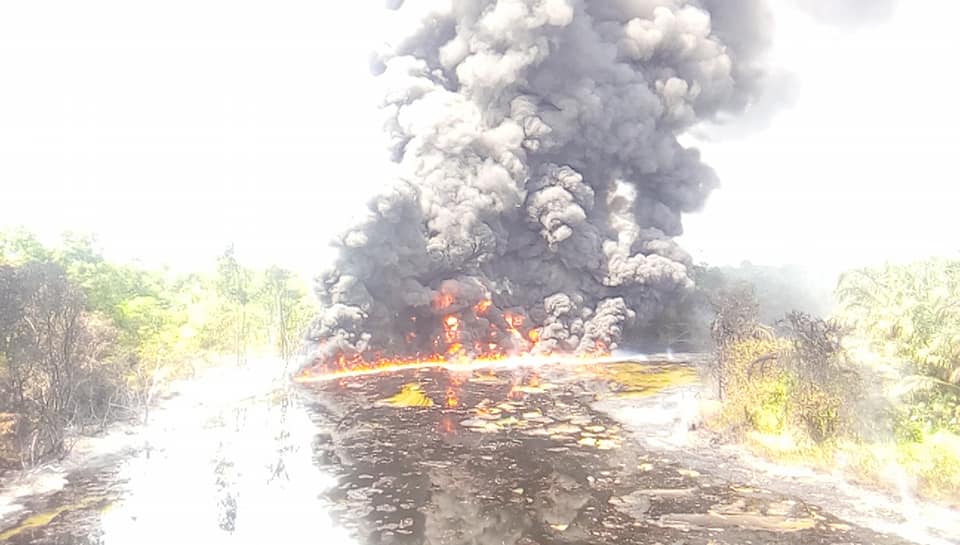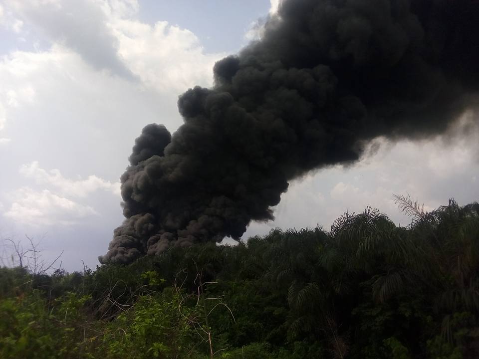 As we speak… Okpare in Olumu Kingdom is on fire… Smoke everywhere as a pipeline or illegally refined crude products has been set on fire. This fire has been on since yesterday constituting environmental pollution to Okpare-Olomu and it’s environs.