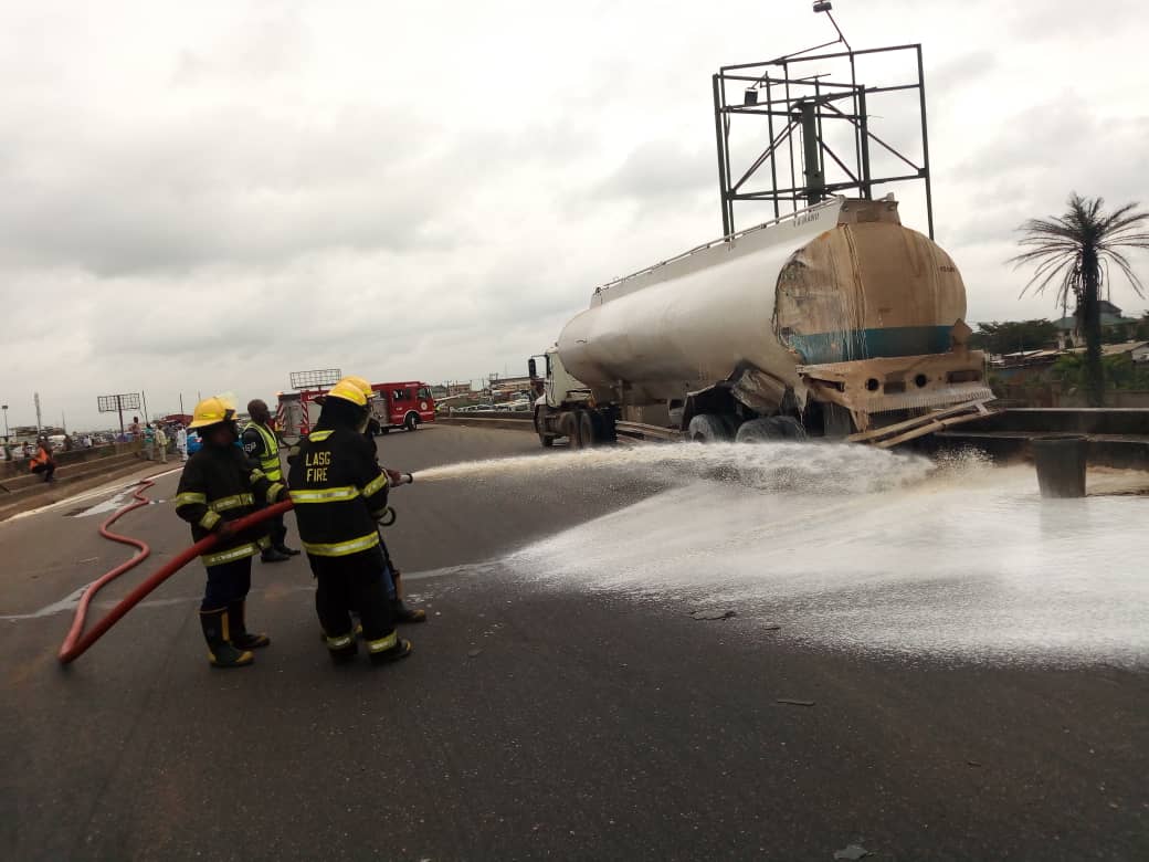 A fuel tanker has spilt its content believed to be fuel on the Long Bridge after the popular Kara market on Lagos Ibadan expressway.