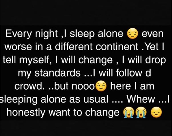Moyo Lawal went on to say, ‘I have disciplined my self so much  that I am literally fighting battles to undiscipline myself. In this generation, how will I ever find a husband without compromising’.