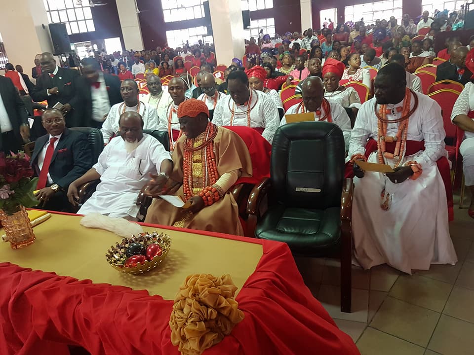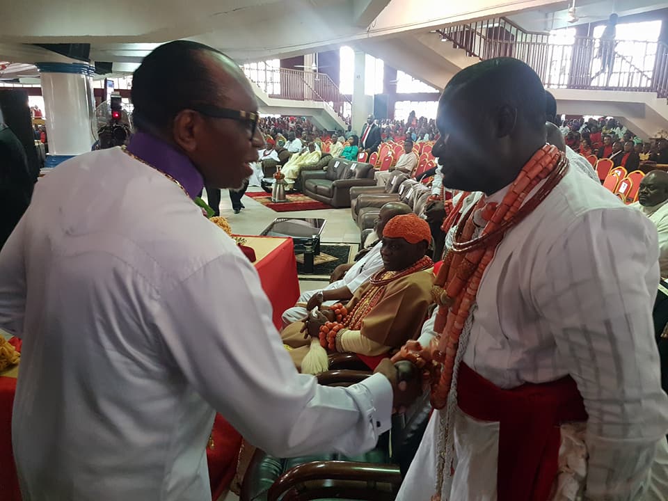 The Olu Of Warri, Ogiame Ikenwoli in company with some Warri high chiefs today attended the 30th Anniversary of the Word of Life Bible in Warri, Delta State. The high chiefs who arrived the church in traditional and native regalia – were warmly welcomed by the immediate past National President of the Christian Association of Nigeria, CAN, Pastor Ayo Oritsejafor. See photos below;