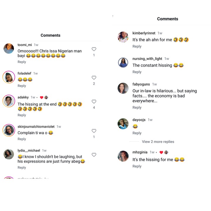 What makes his reaction even funnier is the way he speaks Pidgin English, frequently hissing in frustration as he expresses himself. The video, shared by his wife on their Instagram page, has since gone viral, attracting a lot of reactions.