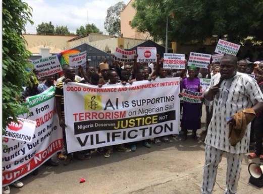 Full story: They were hired to picket the office of Amnesty International in Abuja for indicting Buhari’s Government and Nigerian army of killings and human right abuses in Nigeria; negotiation changed between the hired protesters and their recruiter after the job is done. That’s how fight started