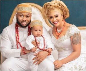 ‘His Gene Is So Strong’ – Nigerians React As Tonto Dikeh’s Ex, Churchill Unveils Son’s Face With Wife, Rose Meurer