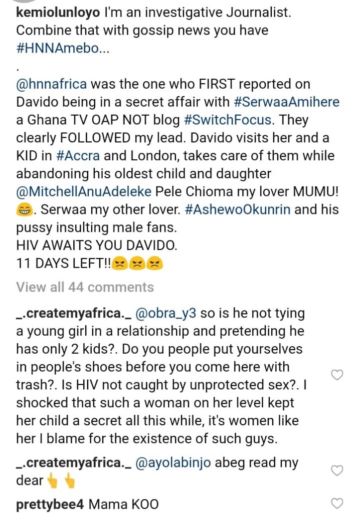 After it was reported that Davido is dating Ghanaian OAP, Serwaa Amihere, Kemi Olunloyo who claims to have broken the news has come out to slam Davido.
