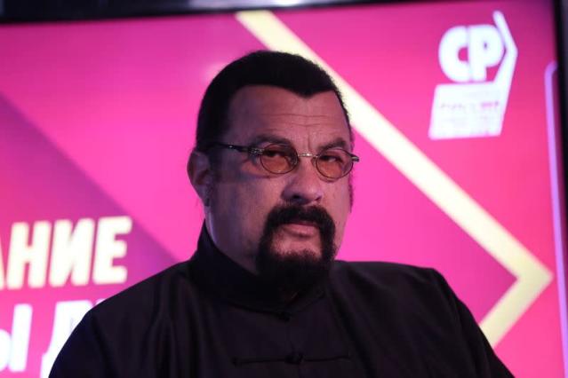 At Saturday’s ceremony, Seagal posed for pictures next to one of the party leaders, Russian writer Zakhar Prilepin, who enrolled in an army of pro-Russian separatists in eastern Ukraine and admitted to commanding a combat unit in a conflict which has killed 14,000 people in seven years.
