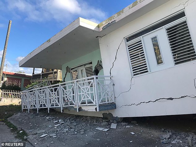 ‘I have never felt anything like this,’ he said. ‘It was like a giant grabbed our room and shook it. The flurry of quakes in Puerto Rico’s southern region began the night of December 28, with quakes ranging in magnitude from 4.7 to 5.1.  Previous quakes of lesser magnitudes in recent days have cracked homes and led to goods falling off supermarket shelves. Victor Huerfano, director of Puerto Rico’s Seismic Network, said that shallow quakes were occurring along three faults in Puerto Rico’s southwest region: