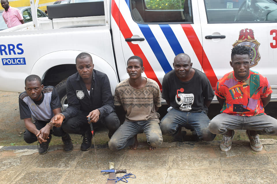 Lagos State Police Command early Monday morning arrested 5 trans-border robbers fleeing into Lagos after robbing an Ogun State based haulage company’s warehouse.