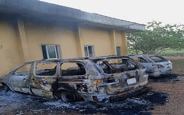 According to TheNation, the hoodlums set the police headquarters on fire.