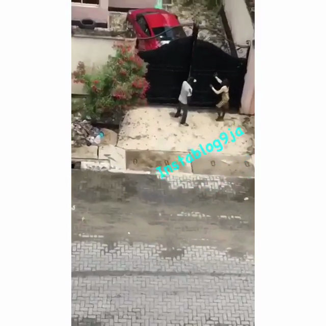 So a prostitute was seen today in osapa, lekki, lagos, fighting a gateman who refused to pay her after overnight of pleasure with him at his boss’ house