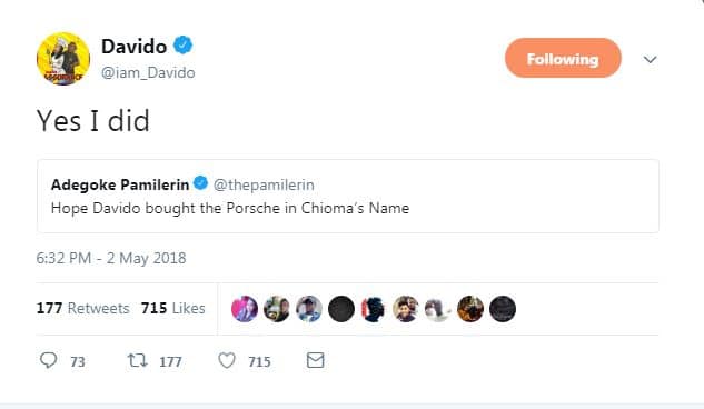 The Question was asked by Adegoke Pamilerin a Popular Nigerian Social Media Promoter , check Davido’s Reply below:-
