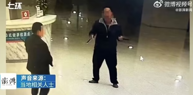 Images published by the state-run news site The Paper appeared to show a man pointing a knife at another man who had armed himself with a stick in a hospital lobby, as well as police officers arriving at the scene.