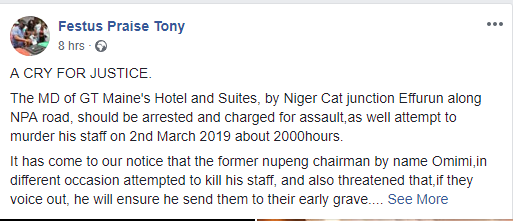 MD of GT Maine’s Hotel and Suites, by Niger Cat junction Effurun along
