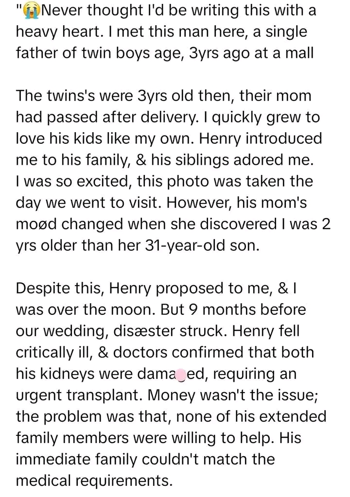 Àccording to her, nine months after the transplant, Henry started dodging their wedding plans.