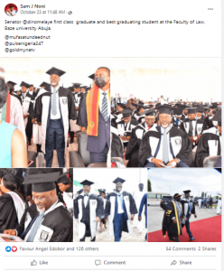“On that Saturday, one of Senator Dino Malaye’s Photographer (his official Photographer) who was at the convocation. He actually posted that he got first class.