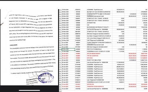 “The unavoidable conclusion from the findings is that a peculiar form of bank fraud was being carried out through the account. The pattern of fraud is a high-end type carried out from the top people within the bank and those who have helped them from outside. The account holder did not protest the use of his account in the way it was used. He did not cooperate with Police investigation but tried to hinder it. This is the evidence of conclusion. The money in question could only have been money of the bank being moved by those who should protect the property of the bank.”