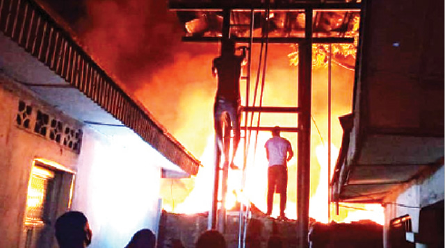 Residents, who noticed the inferno, had a tough time trying to extinguish the fire, which razed all the shanties, a storey building and the Grace Apostolic Church.