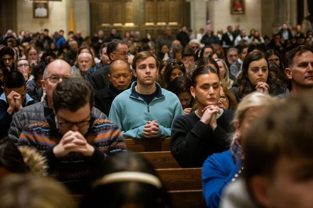 Hundreds of Catholics gathered on Sunday, Feb. 23, at New York City’s St. Patrick’s Cathedral to pray for Pope Francis, who remains in critical condition after he was diagnosed with double pneumonia.
