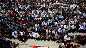 People at the funeral in the village of Salfit carried Palestinian flags and chanted “Allahu Akbar”, or God is greatest.