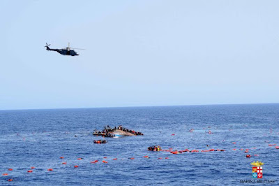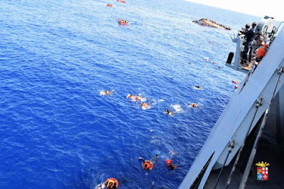 Some migrants climbed onto the hull of the overturned vessel, while others swam for lifeboats or toward the navy ship.