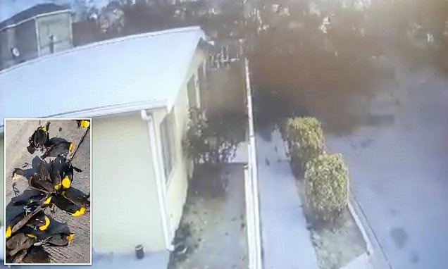 Shocking footage, which has gone viral on social media, shows the cloud of yellow-headed blackbirds suddenly dropping to the ground.