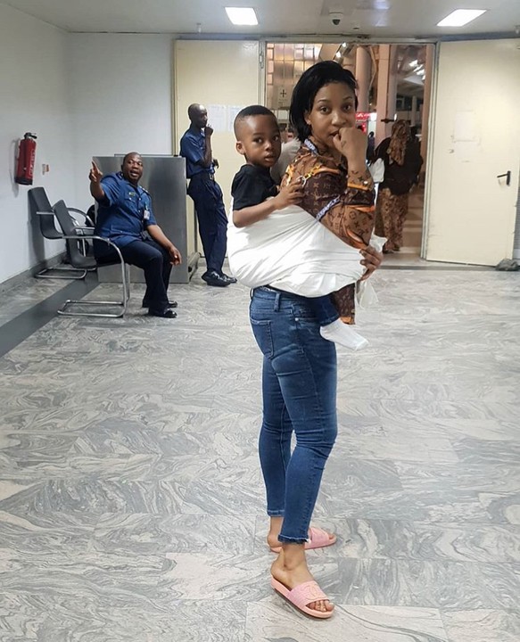 King Tonto Dikeh shared a picture carrying her son on her back precisely in a hospital as she revealed how she almost lost her him
