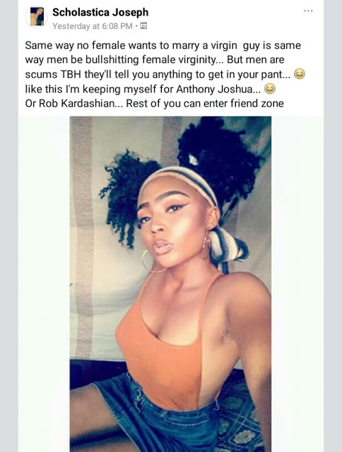 This pretty Nigerian lady, Scholastica Joseph, has joined the likes of Halima Abubakar, Toke Makinwa, Uriel and more to declare their love for British-Nigerian boxer, Anthony Joshua.
