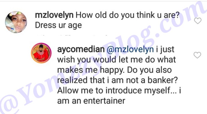 ‘I am not a banker, I am an entertainer’, Popular Comedian Ayo Makun aka AY replies fan in a polite manner, who asked why he doesn’t dress his age.