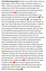 She added in her post that her mother definitely wanted Falegan for her. She said her mother told her never to leave him no matter what she does.