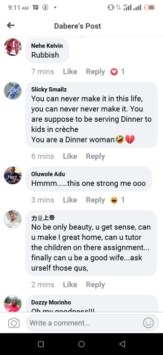 The woman by name Daberechi caused a stir after she took to social media to make a controversial statement warning poor men to stay off her page because of her beauty.