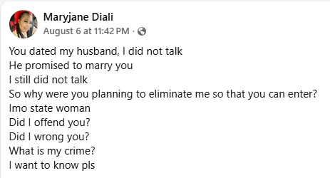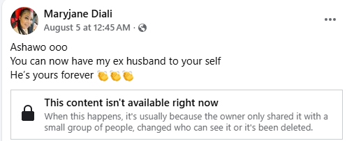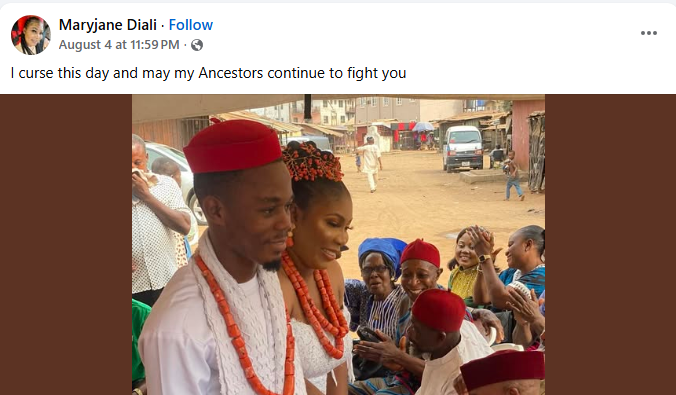 A Nigerian woman, Maryjane Diali, has dragged her ex-husband, saying she cursed the day she married him.