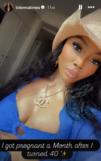 Media personality, Toke Makinwa, has revealed that she got pregnant one month after her 40th birthday.