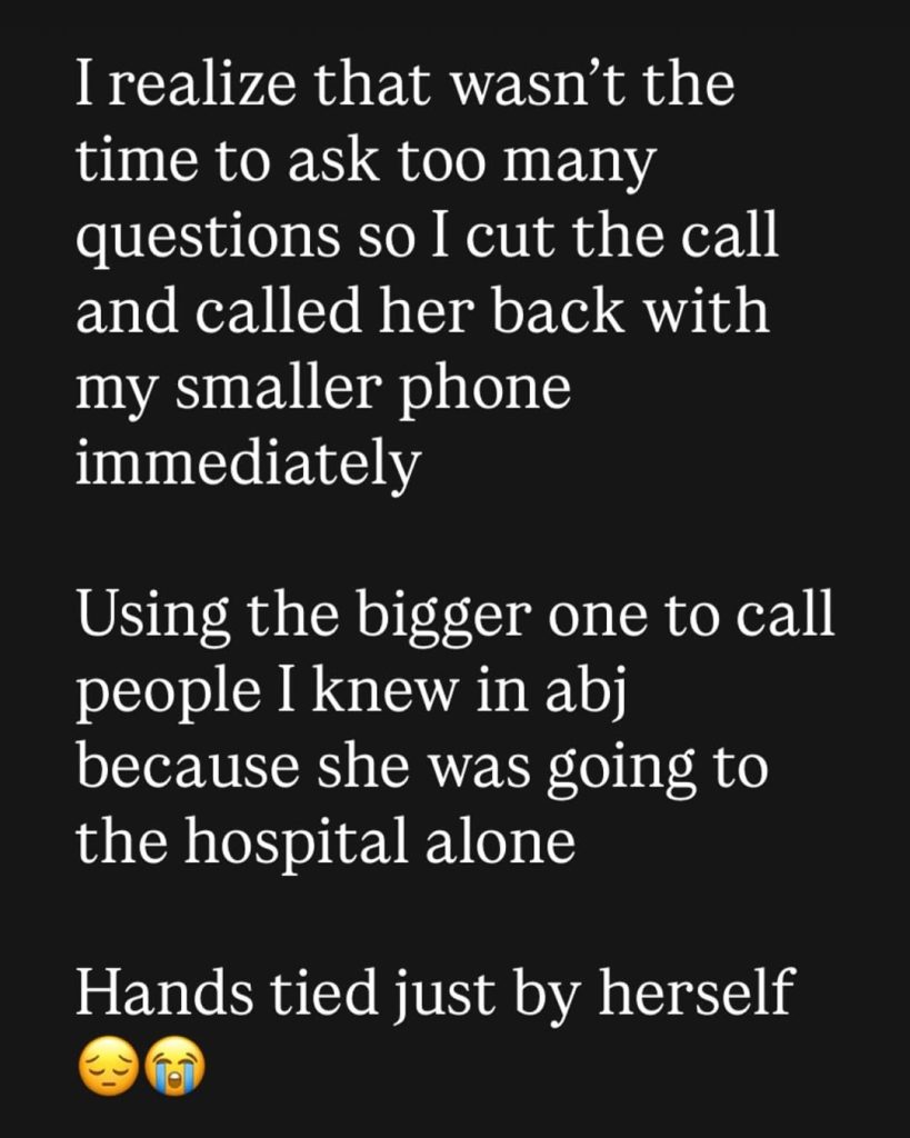 He said at that point, his sister stopped speaking well, so he ended the call just as an uncle in Abuja arrived at the hospital to be with Nanyah.
