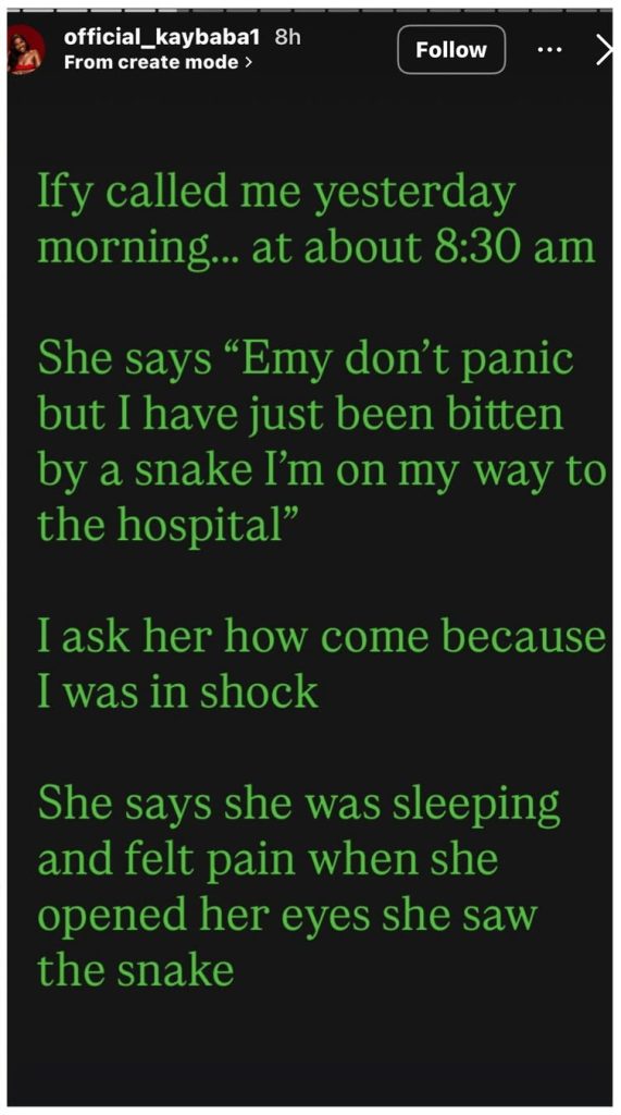 Emy Kaybaba, brother to Nanyah, stated that she called him at 8:30am on Saturday, Jan. 31, to tell him she had been sleeping when she felt pain and woke up to see a snake.
