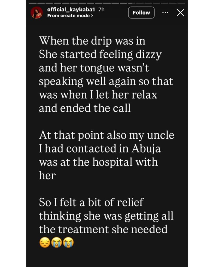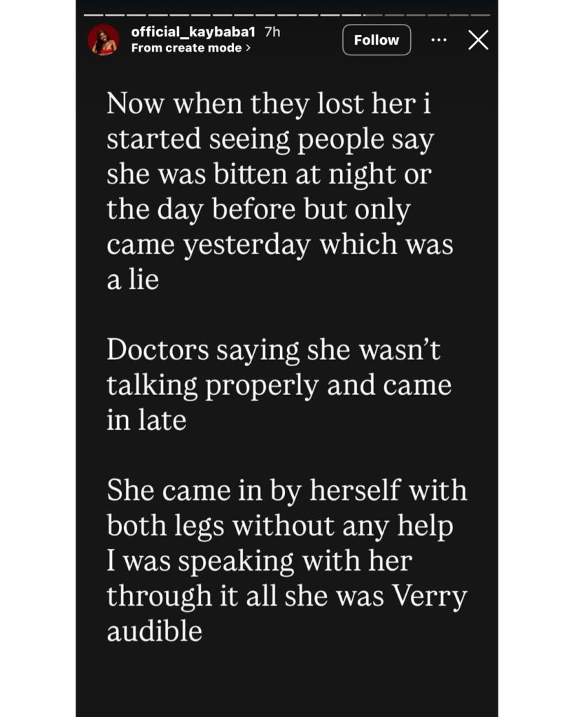 Kaybaba accused the hospital of negligence as he mourned his sister. He stated that the hospital is now claiming his sister was not speaking well when she came in. He slammed that as a lie and stated that she came into the hospital by herself and was speaking clearly to him on the phone.