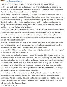 He wrote: I AM GUILTY! EVEN IN DEATH KEFEE MUST NEVER BE FORGOTTEN!!