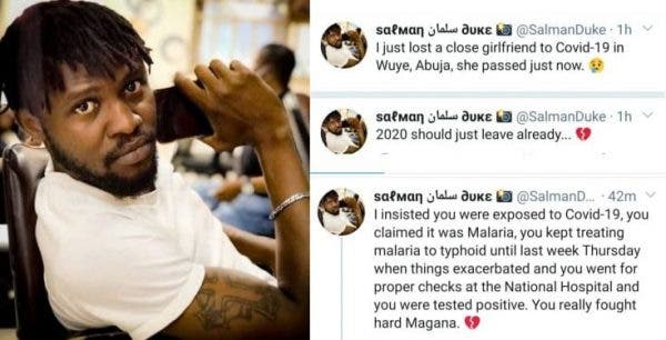 A Nigerian man has taken to Twitter to lament after losing a close girlfriend to Coronavirus in Abuja.